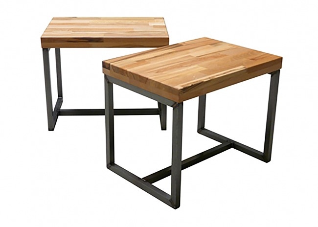 Ces tables basses sont réalisées en fer carré acier brut avec soudures apparentes et plateau en hêtre massif.